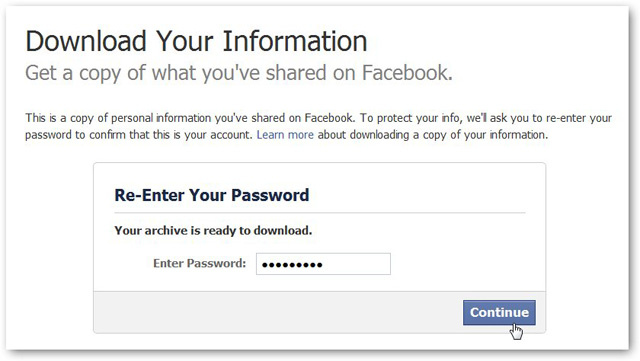 - After that, here will show a small dialog box. And there is a download link at the bottom of the dialog box.Click on the link so as to download your archive. This may costs you about 2-3 hours if you want to recover Facebook messages.