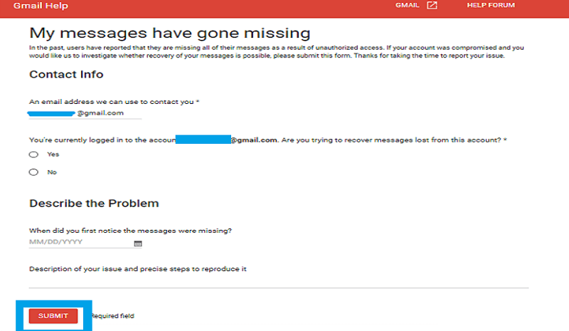 After filling up the form , you need to submit the form and hope for the best that the Gmail emails will be recovered.