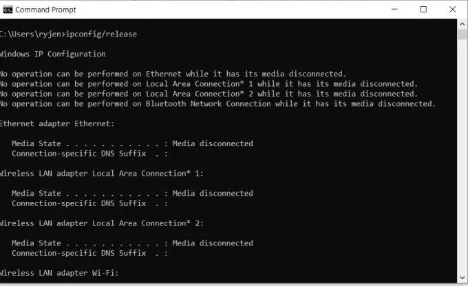 This will cause your network adapter to reach out to the router and request a new IP address. The router will respond by assigning an IP address to your computer.