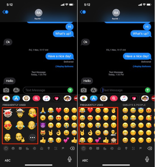 What if you don’t want to completely get rid of the Memoji stickers from the default keyboard? Well, there is a smart hack through which lets you hide them without having to disable them completely. Simply bring up the emoji keyboard by tapping on the smiley icon. Then, swipe left until the Memoji stickers are hidden. Then, force quit the app. Now, bring up the emoji keyboard. Check out, the Memoji Stickers will be hidden and you need to swipe left to reveal them.