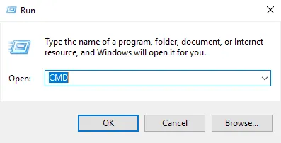 Open Run and type CMD to open the Command Prompt.