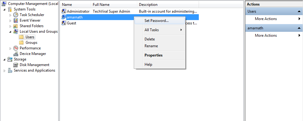 Step 7. Now navigate to Local Users and Groups, select your local account, select “Set Password,” and enter your new password there.