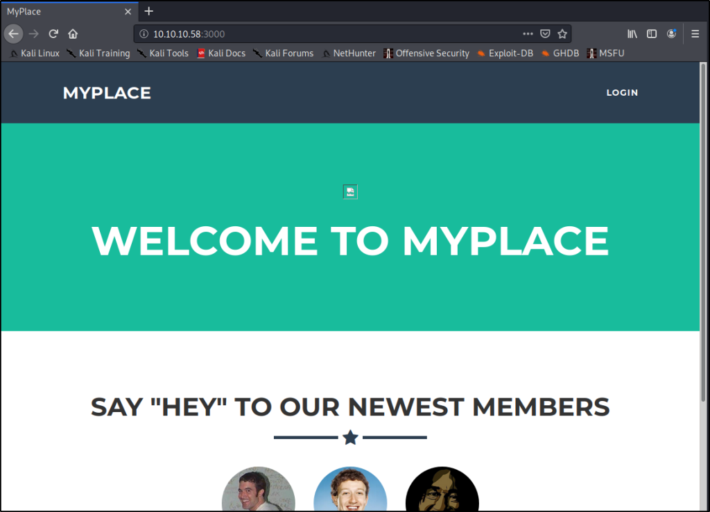 Node lives at 10.10.10.58, and has a webserver listening on port 3000. Let’s start by browsing to that webpage to see what we get once we’re connected to the HackTheBox VPN.