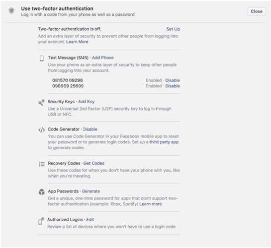 As you can see, there are additional methods to enhance security and convenience. For instance, you will be able to set up authorized devices where Facebook won’t ask for log-in codes. Similarly, there are options for Code Generators, Recovery Codes and Third-Party apps. We know, it can be a pain in the ass if you are in a place with no network coverage. But, even then, you can use the Recovery Codes for logging in. Altogether, this feature will protect your Facebook account like never before.