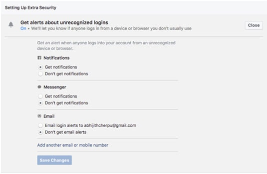 Facebook normally keeps the record of the common device that you access Facebook from. Facebook offers an option to alert you upon unauthorized login attempts. That is, if anyone let it be a hacker or someone else tries to log into your account from another device, you will be notified. You can get alerts via different mediums like Messenger, Facebook Push Notifications and Email. According to your convenience, you should enable them. If you think there’s an account breach, you can instantly revoke the session.