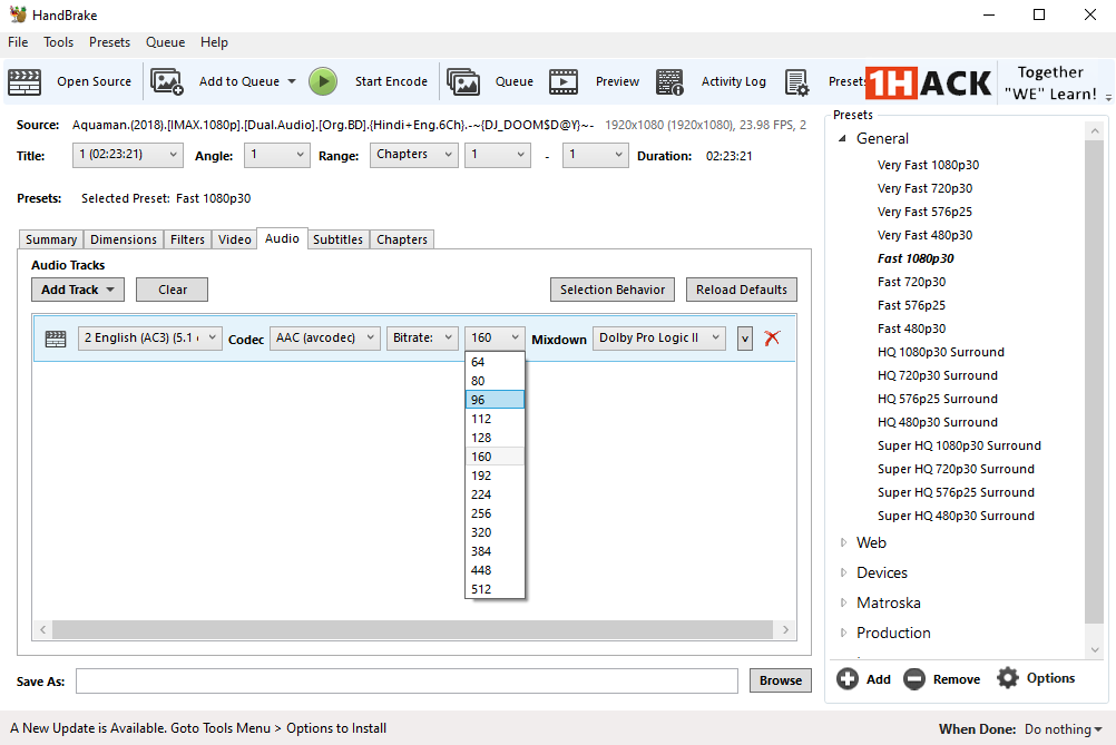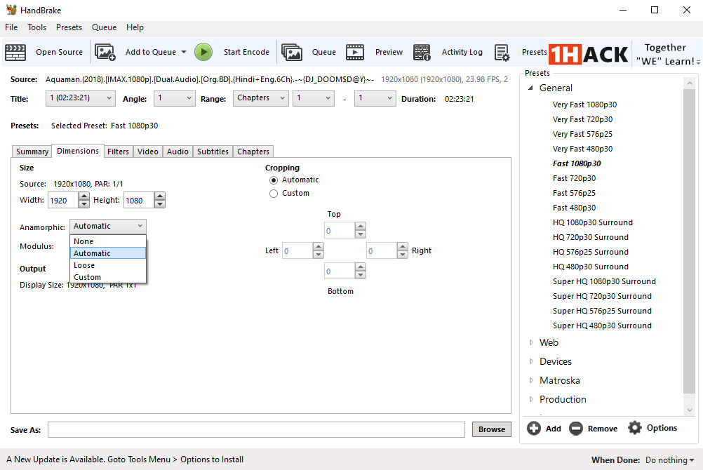 To make the best HandBrake x265 advanced settings for 4K UHD or full HD videos for example, you need to make sure that you’ve downloaded and installed HandBrake 1.2.0 .