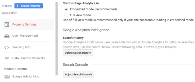 This is a quick way to make sure the Google Search Console data is linked to the Analytics account for the same property. You’ll be able to see Search Console data in your Google Analytics reports once you enable this.