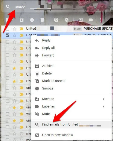 - If you don’t see the person’s name in your inbox, do a quick search by typing his or her name in the search box, and then right-click any messages from the search results, and select Find emails from.