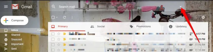 - Go to the Google search bar and click on the small downward-facing arrow on your right to display the options for locating messages.