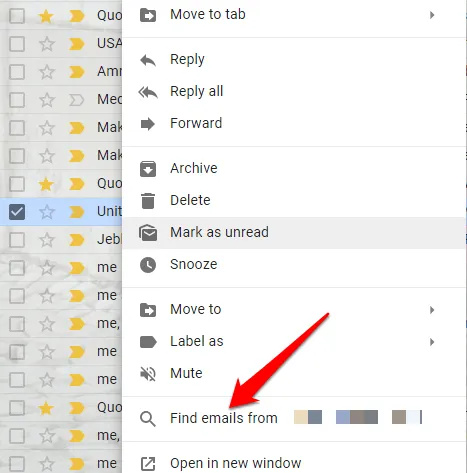 - Once you find the sender you want, click Find emails from to populate the list of messages.