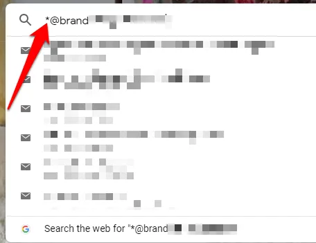 - Open your Gmail account. In the search bar, type an asterisk (*) followed by the company’s domain name, for example, *@1hack.us.