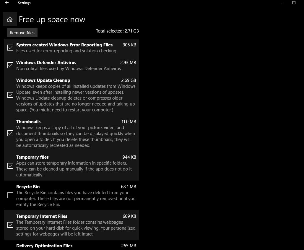 To free up disk space using storage sense open Settings → System → Storage here click on “ Free up space now ” in blue text. This will present you with a list containing all of the different types of data that you can remove with a brief overview of what each file is, as well as identifying how much space you’ll reclaim by deleting it. Check the temporary files that you want to delete to free up space, and click remove files. Also, check how to configure Storage sense to automatically Free up space on windows 10.