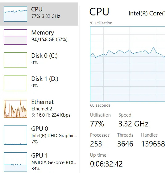If you experience robotic, distorted voices at certain times, for example, when playing games or rendering 3D images, use CTRL + SHIFT + ESC any time you have issues. This will open Task Manager, and you’ll be able to see your current hardware usage.