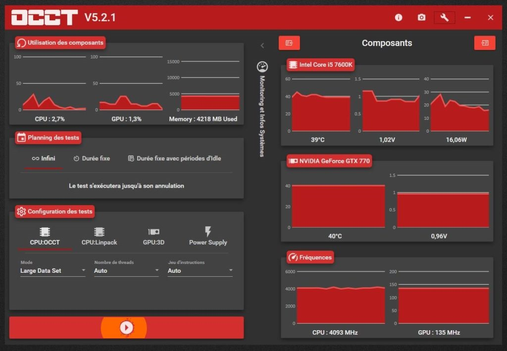 Once the tool is downloaded, accept everything during its installation, additional tools allowing the complete diagnosis of the processor are necessary, once this makes you launch OCCT and we will then be able to start diagnosing your processor.