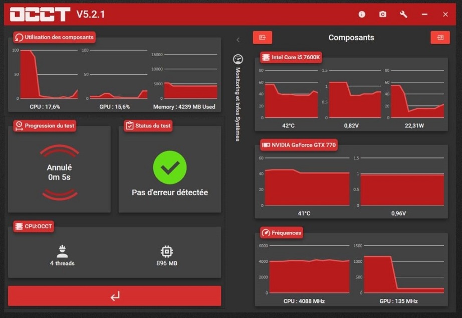 Once the time has elapsed (the time you have chosen), you can stop the diagnosis, if no errors are displayed, this is fine, if one or more errors are detected, OCCT will let you know.