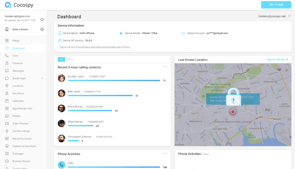 Location Tracking – That is the most important feature by Cocospy that you can use to detect’ someone’s location by phone number and GPS or WiFi-based locations.