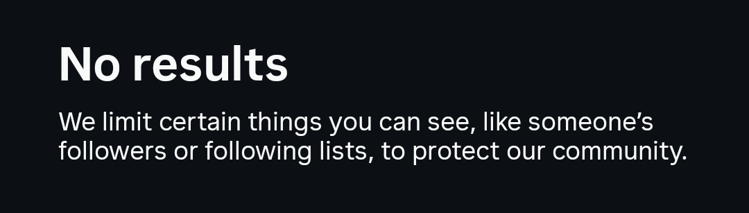 “No results. We limit certain things you can see, like someone’s followers or following lists, to protect our community.”