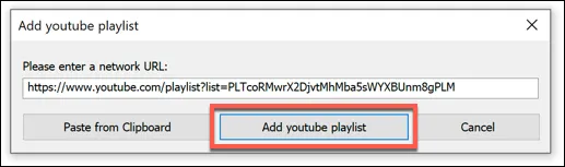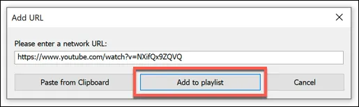 Paste the URL to your video in the Add URL window, then click Add to Playlist to add it to your playlist.