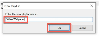 - In the New Playlist window, type a name for your new wallpaper playlist, then click OK to save.