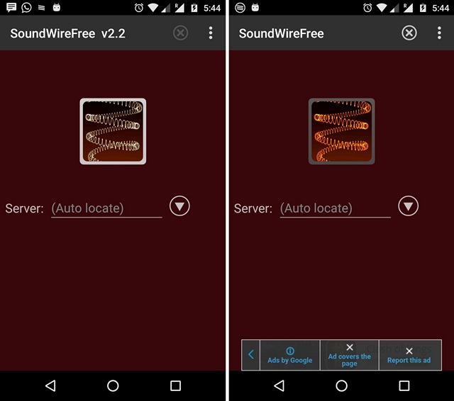 4. Then, open the Android app and set the Server to “ Auto locate ” and hit the coiled wire button . The wire glowing suggests that the connection has been made. Your Android device will then start playing the music that’s playing on your PC. The good news is the music keeps on playing even when you minimize the app.