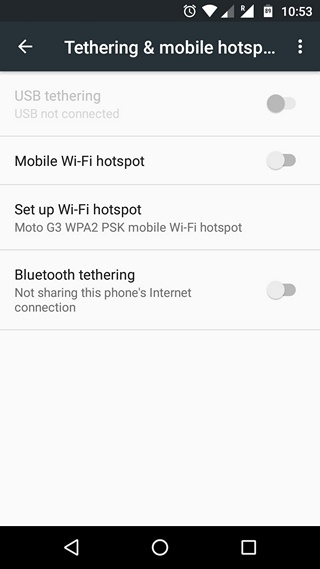 1. Set up Bluetooth, WiFi or USB tethering from your Android device to Windows PC the usual way by going to Android Settings->More->Tethering & mobile hotspot. You will need to have a working internet connection, so check the internet connection when the Tethering is set up. Once set up, play any music on your PC.