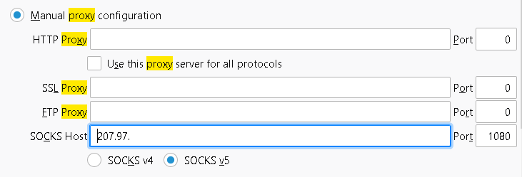 - if its socks you write it in socks host. Ignore the rest of the boxes (ftp proxy, ssl proxy)