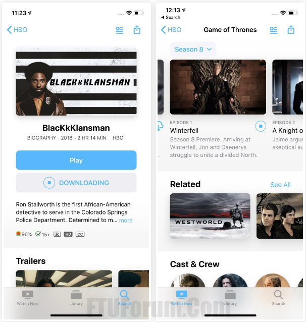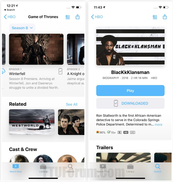 HBO has not updated either of its apps for iOS yet with download abilities, but we’re hoping that’s coming one day soon. Until then, the only way to download Game of Thrones and other shows, as well as films, from HBO is to upgrade to iOS 12.3 on your iPhone. Why? Because the download feature is exclusive right now to Apple’s new TV Channels service in the TV app. Unfortunately, that means there’s no Android support at this time.
