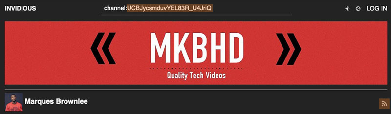 While using invidio.us ( or any of its forks ), if you go to a channel page you’ll get the channel ID in the browser’s address bar, in the invidio.us search bar and on the bottom right corner there an RSS link to that channel. Easy peasy.