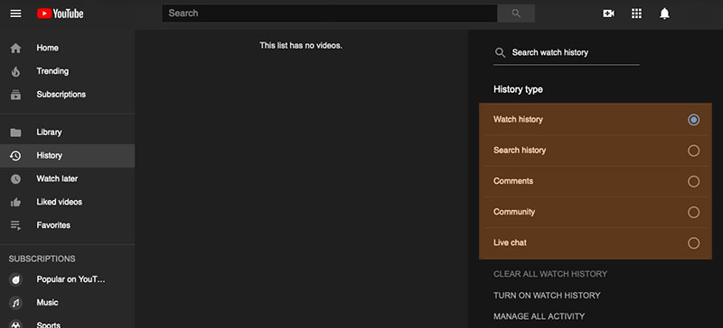 - Go through all the menus and “clear history” and “turn off history”. Delete all comments and when you’re done make sure you click on “MANAGE ALL ACTIVITY”.