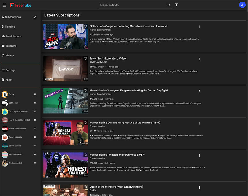 FreeTube is a YouTube client for macOS, Linux and Windows. Powered by invidio.us API, all of your user data is stored locally and never sent or published to the internet.