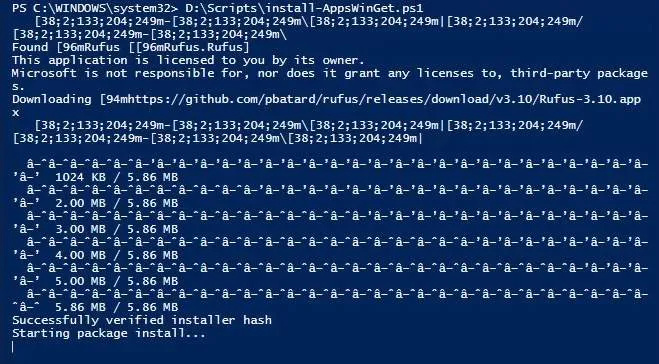 Save that as a PowerShell script with a name like install-AppsWinGet.ps1. You can run the script from within PowerShell ISE or from the regular PowerShell command line.