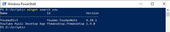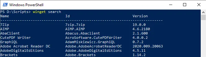 The first thing you should do is see what apps you can install with WPM. Enter the cmdlet winget search and press Enter .