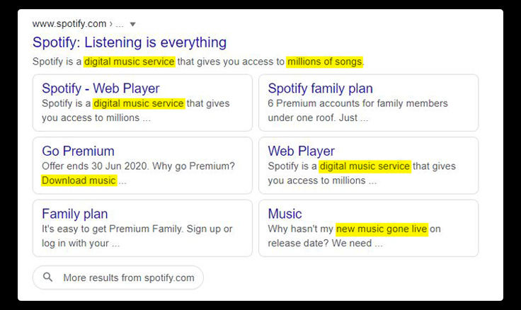 2. Once you have searched the website name you need to look for keywords that the site uses, here is an example of what I mean: