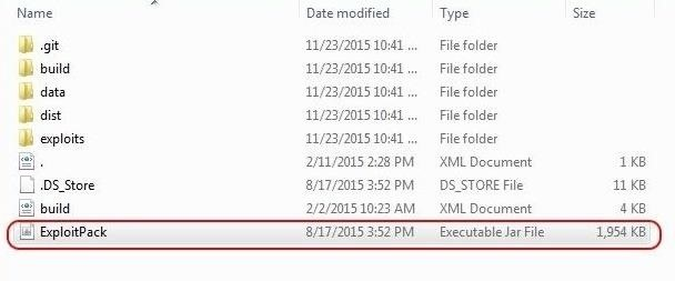 When you go to the directory with Exploit Pack, look for the executable .jar file as I circled above. Click on it and it will begin to open Exploit Pack.