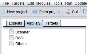 We can click on the “Auxiliary” tab and—similar to Metasploit—it contains the Scanner and DoS modules.