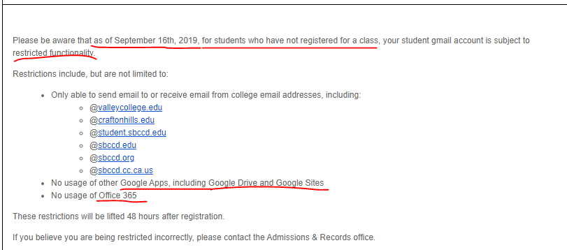 now collages have blocked the G-drive and off-collage email access to students until they verify their identity in the collage or enroll in any of their courses.