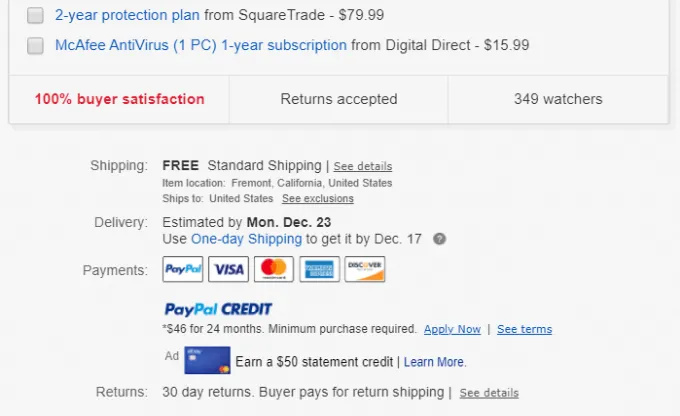 Whenever you buy from a merchant that accepts Paypal payments, like eBay, you’ll see PayPal credit listed as a payment option.