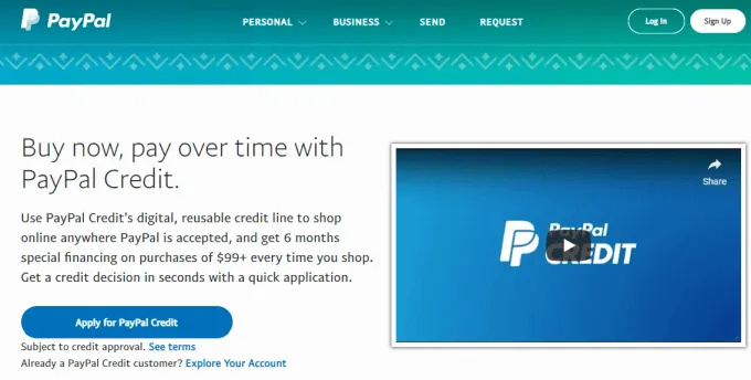 Paypal credit lets you use credit for small purchases, but not so much that you can’t afford to pay it off each month. Paying the entire balance off means you’ll avoid paying the 25.99% interest rates that come along with smaller purchases under $99.