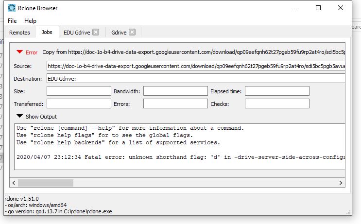 and put “–drive-server-side-across-configs” this command in extra arguments while transferring to enable server side transfer