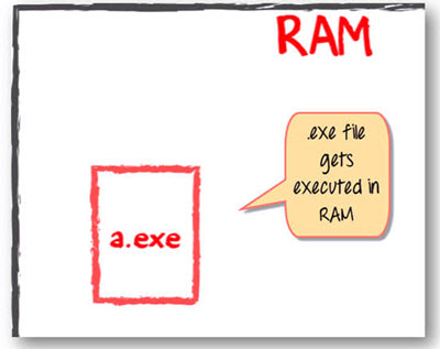 During program run, a loader program will load a.exe into the RAM for the execution.