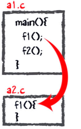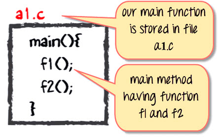 Suppose in the main, you have called two function f1 and f2. The main function is stored in file a1.c.