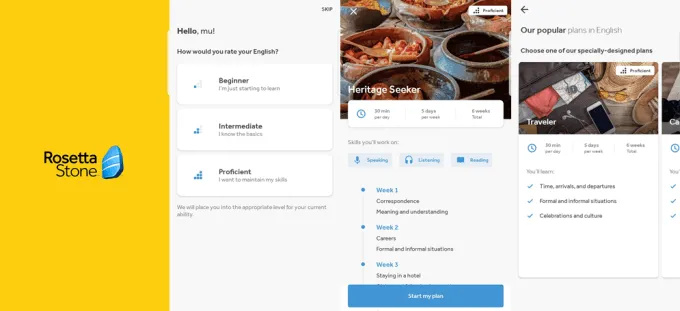 Rosetta Stone is another free learning platforme/) that’s been teaching people new languages for more than two decades. Once you download the app, you can flip between 24 different languages or if you want, you can stay focused with personalized learning based on your motivation.