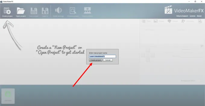 Start by clicking the + sign to start a new project. You will then be prompted to give your video a name. Let’s call this one Learn VideoMakerFX.