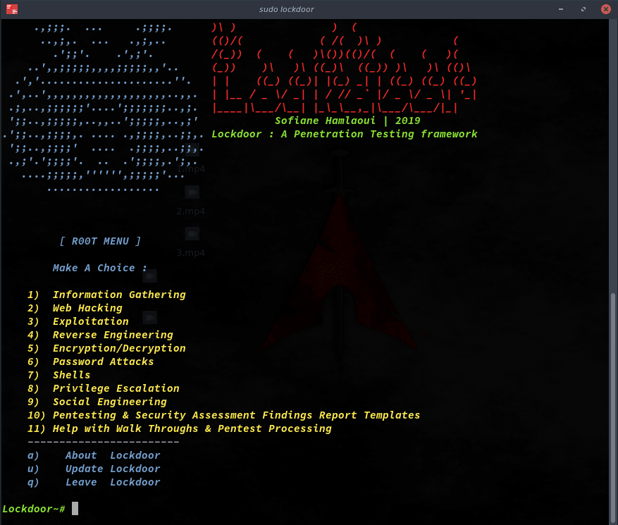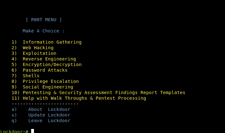 After completing the installation you can now launch the lockdoor framework by simply typing ‘lockdoor’ on the terminal.
