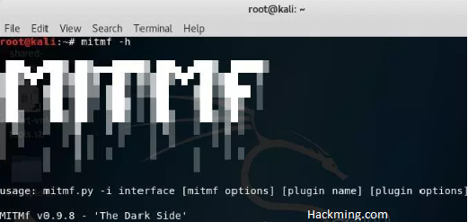 MITMF-h command is used to see all the commands of this tool.