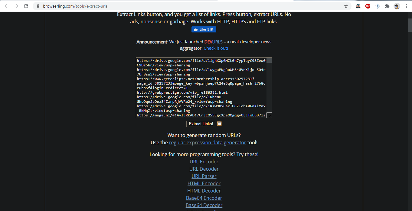 Guys you can extract the URLs from the text by using something like browserling