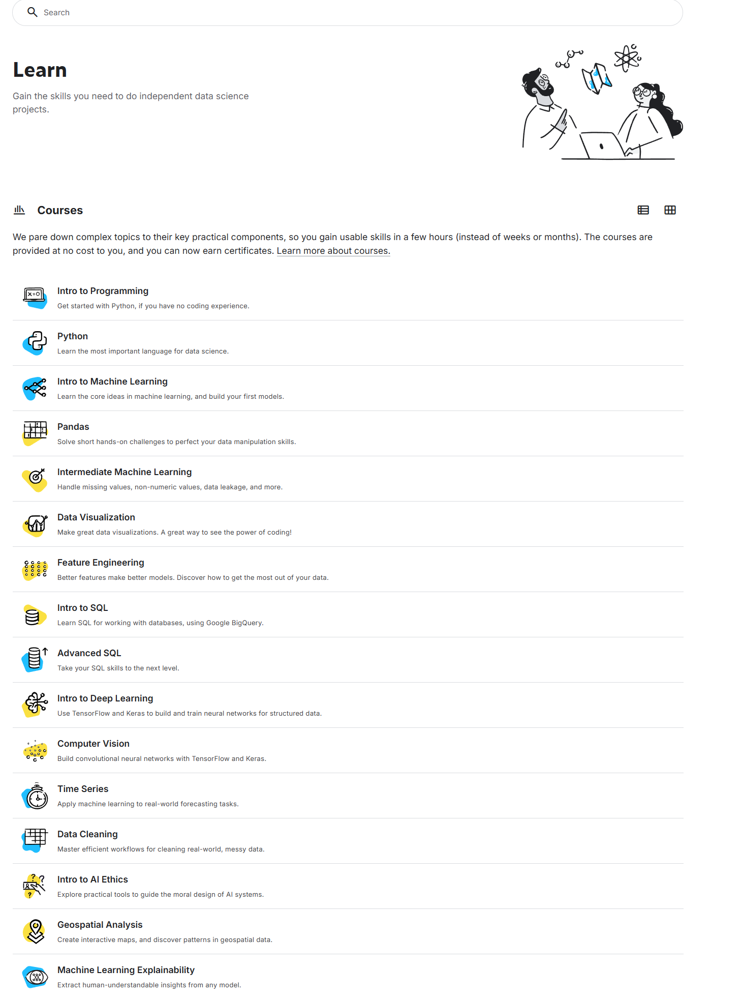 Link: https://www.kaggle.com/learn