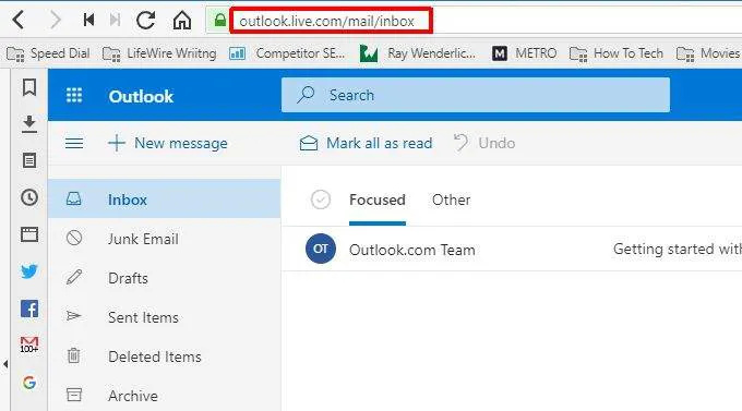 In either case, the final URL you’ll find yourself on is outlook.live.com .