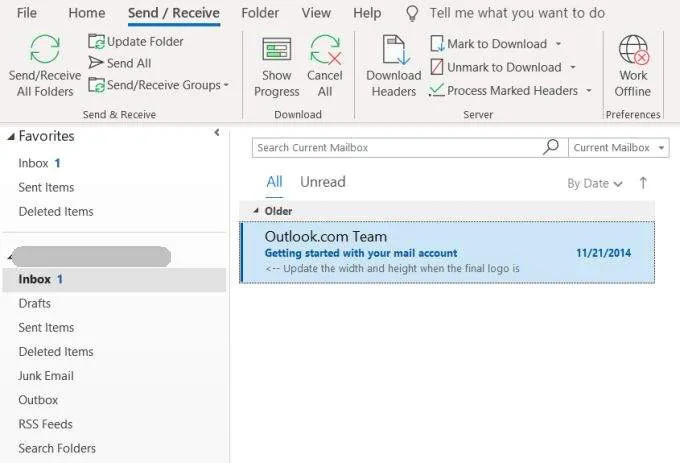 Outlook desktop will open. When it refreshes next, you’ll see your Outlook.com emails arriving in the Inbox.